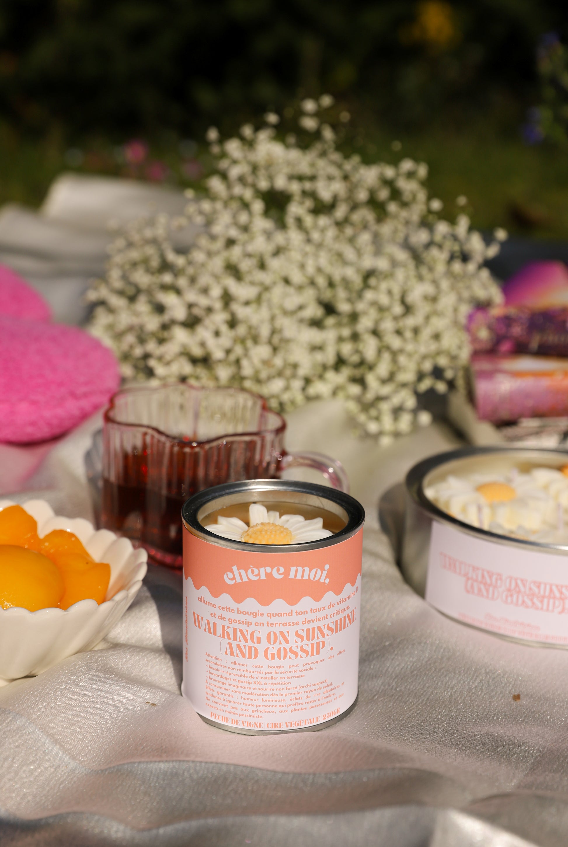 Bougie "Walking on sunshine (and gossip)" | Bougie printemps | Pêche de vigne